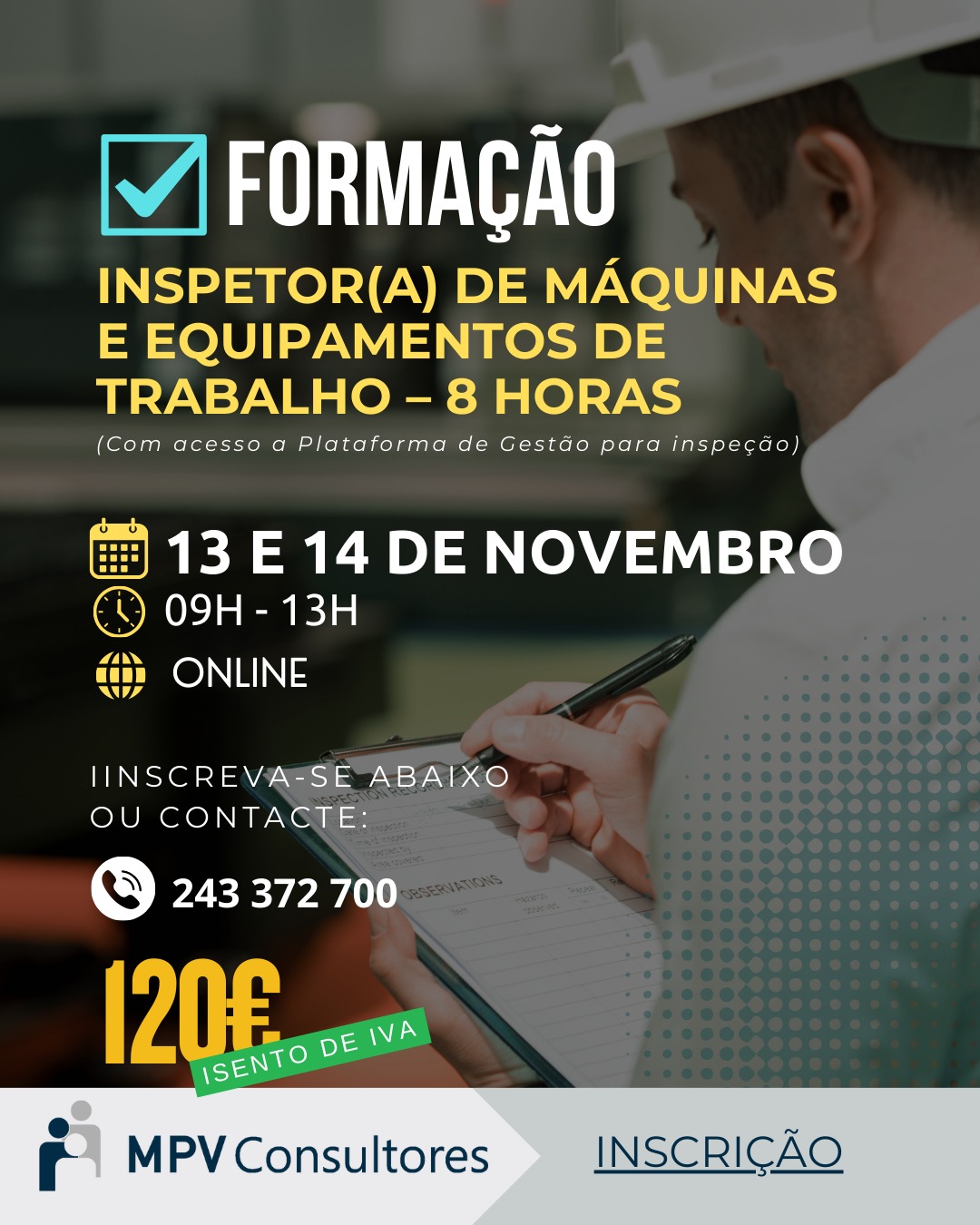 INSPETOR(A) DE MÁQUINAS E EQUIPAMENTOS DE TRABALHO – DL 50/2005 8 Horas 26 setembro 2025 NOVIDADES Votos do utilizador: 5 / 5